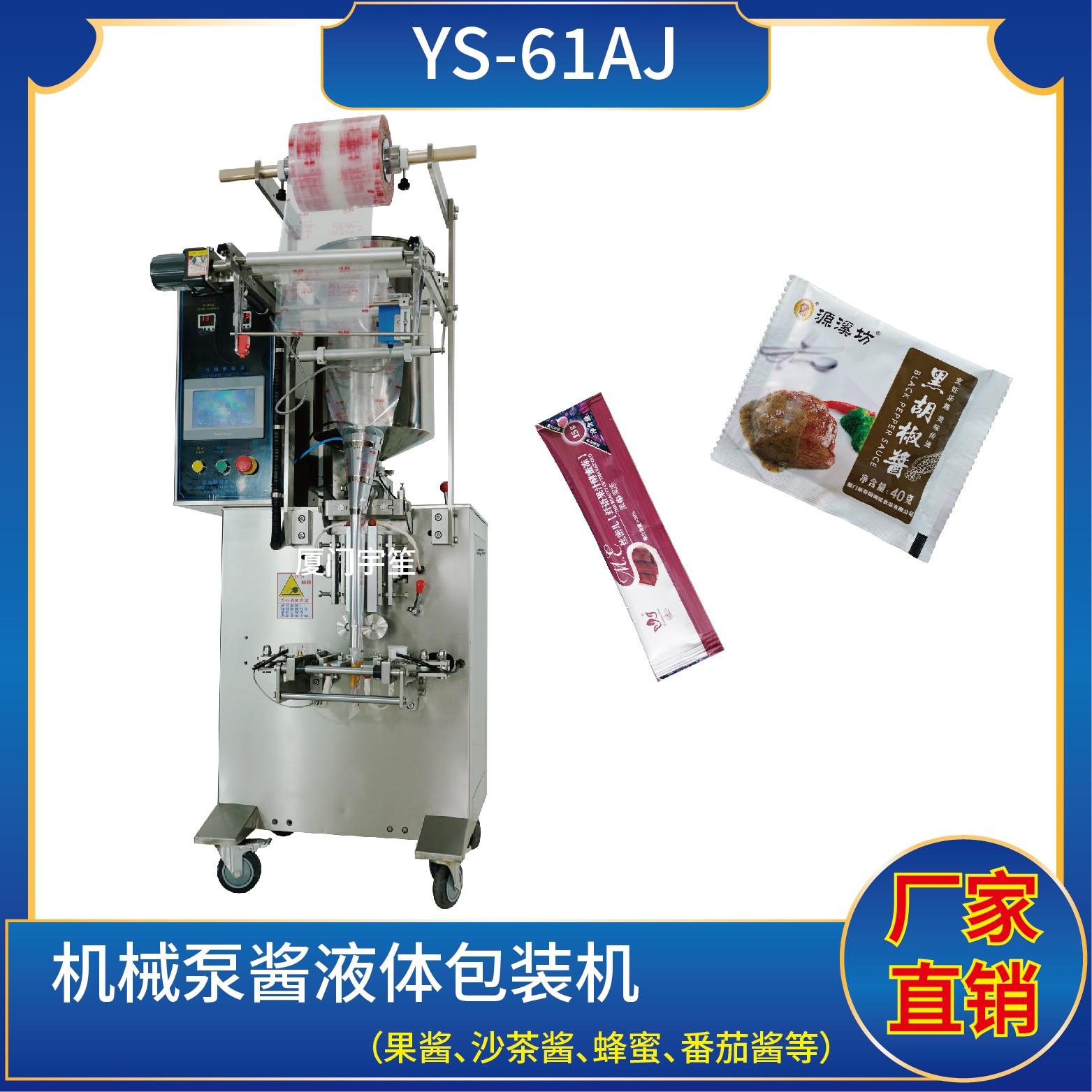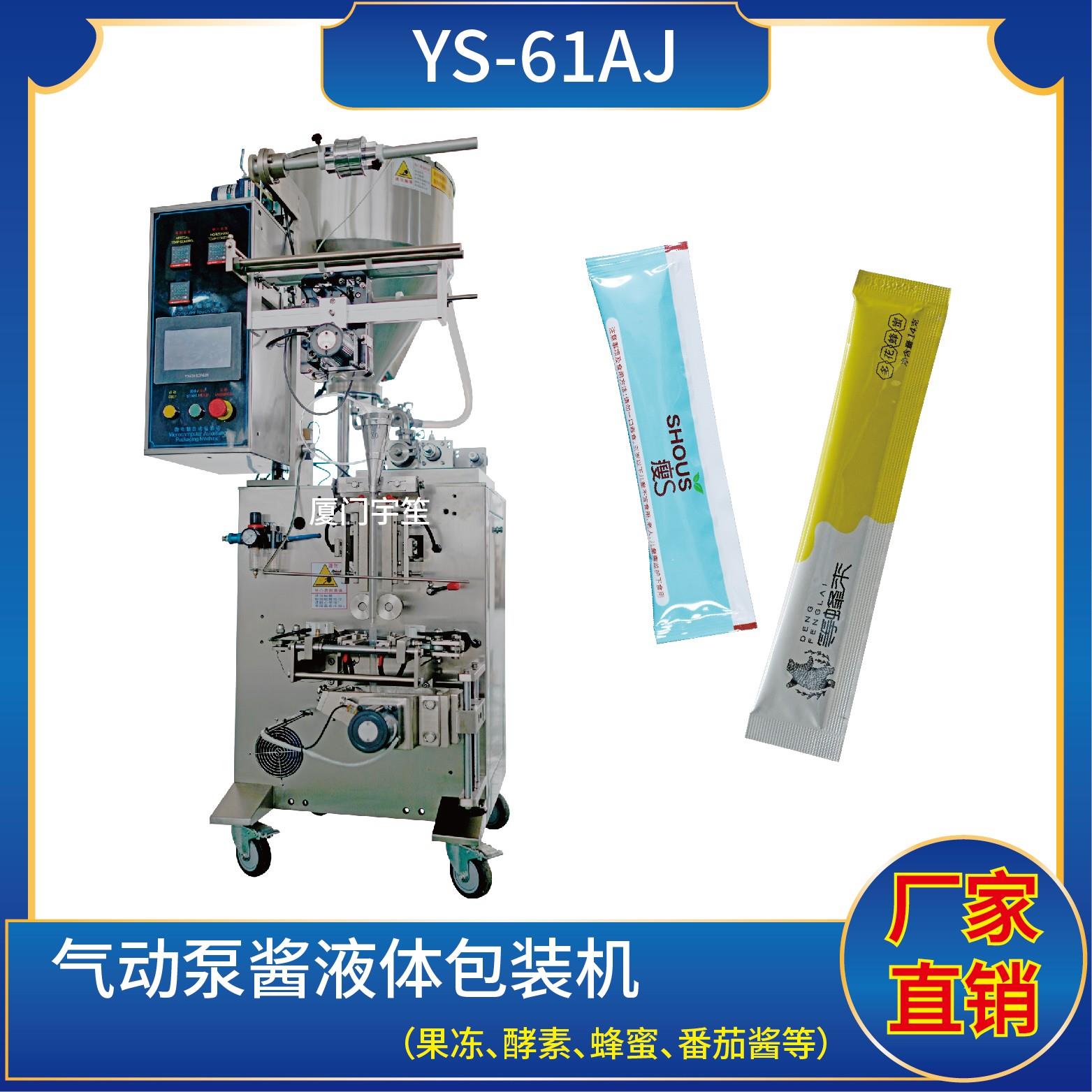 YS-65BJ 氣動(dòng)泵醬液體包裝機(jī)特 點(diǎn)1、適用于食品、醫(yī)藥、化工、化妝品行業(yè)中液體、醬料等物品的計(jì)量包裝。2、可自動(dòng)完成制袋、計(jì)量、下料、封合、分切、計(jì)數(shù)、且可根據(jù)客戶(hù)要求配置打印批號(hào)等功能。3、觸摸屏操作,PLC 控制,驅(qū)動(dòng)步進(jìn)電機(jī)控制袋長(zhǎng),性能穩(wěn)定、調(diào)整方便、檢測(cè)準(zhǔn)確。智能式溫控儀,PID調(diào)節(jié),保證將溫度的誤…