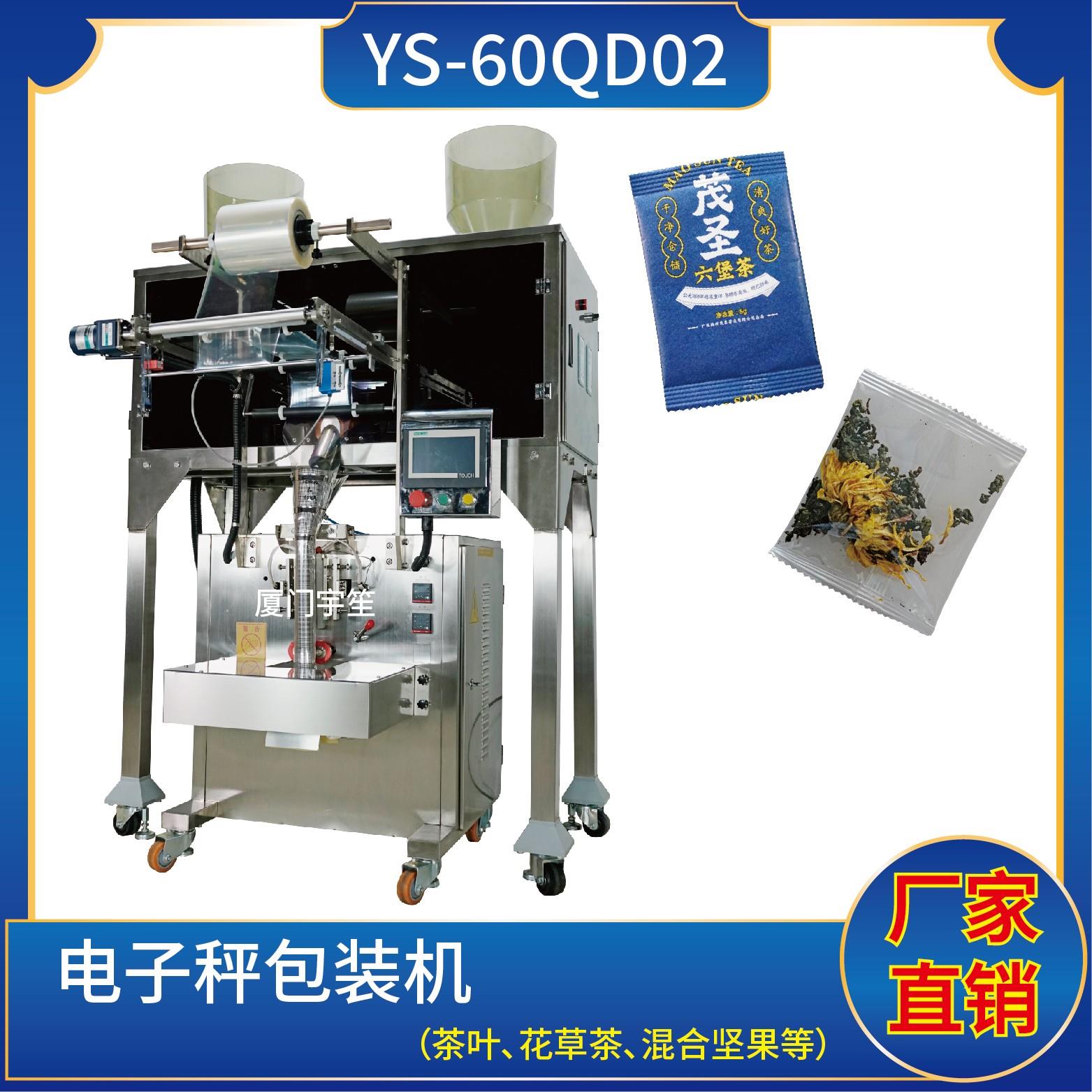 YS-60QD新一代 茶葉包裝機(電子稱)一、特點:1、適用于食品、醫(yī)藥、化工等產(chǎn)品中的顆粒狀、短條狀、片狀固形物如:膨化食品、蝦條、花生、爆米花、麥片、瓜子、白糖等多種物料。2、可自動完成制袋、計量、下料、封合、分切、計數(shù)、且可根據(jù)客戶要求配置打印批號等功能。3、觸摸屏操作,PLC控制,驅動步進電機控制袋長,性能…
