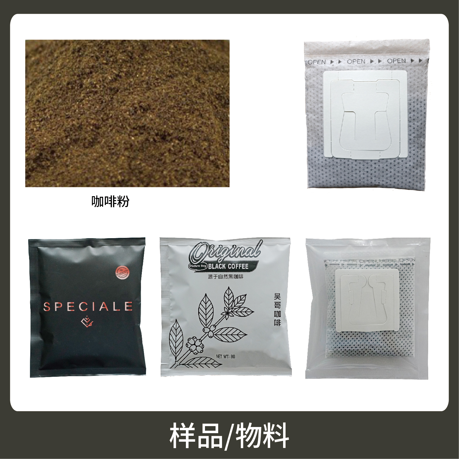 5、包裝材料:尼龍、玉米纖維、掛耳咖啡膜、復合膜(預制袋)。
